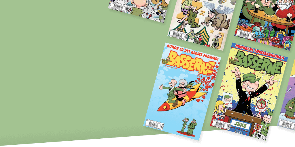 Basserne er Danmarks humorblad nr. 1, og hvis du leder efter et godt grin, er Basserne det perfekte valg. Serien er skabt af Mort Walker i 1950 ig følger Jens Fup og det sjove liv på kasernen i Pløresødallejren. Her får du stribevis af underholdning, når får et indblik i soldaternes skøre militærliv. Har du først åbnet et af de sjove magasiner, så er det svært at lægge det fra sig igen. Bladet udkommer hver anden uge og leveres direkte til din dør, så du aldrig skal vente længe på næste grin. Abonnér på Basserne og få humor leveret lige til døren!