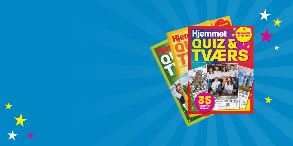 Krydsordshæftet er for dig, der kan lide at slappe af på en aktiv måde med underholdende, interessante og hyggelige krydsordsopgaver. Du vil møde udfordrende, sjove og varierede opgaver og være sikret mange timers underholdning. Få Hjemmet QUIZ&TVÆRS direkte hjem i postkassen hver måned.