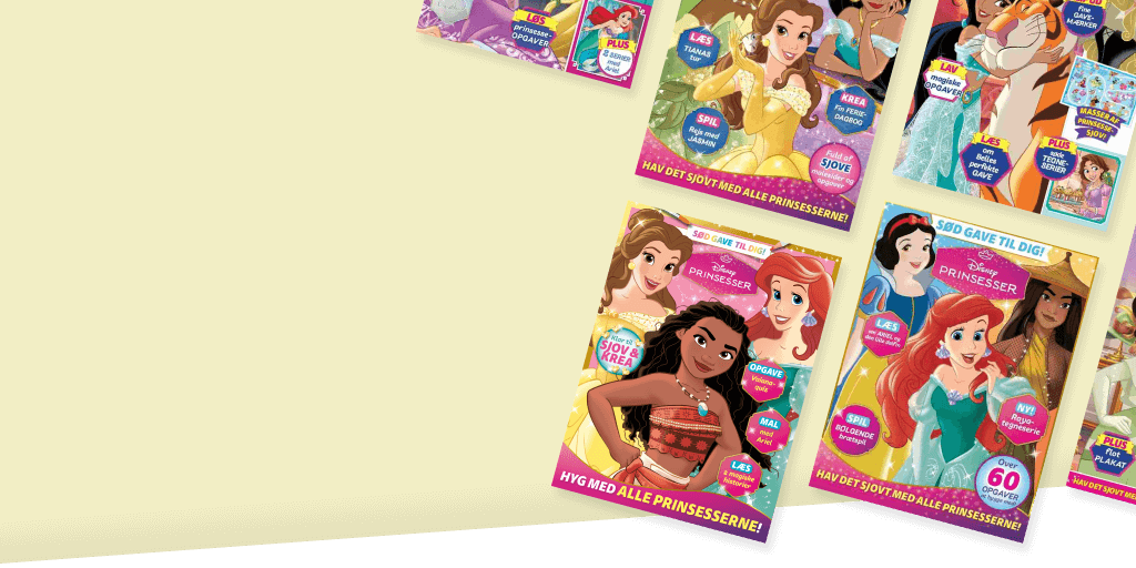 Hver udgave bringer de elskede prinsesser som Ariel, Vaiana, Rapunzel og flere til live med spændende historier, kreative opgaver, farvelægningssider og sjove klip-og-klister-aktiviteter. Disney Prinsesser motiverer til læsning og historiefortælling på tværs af generationer og tilbyder masser af idéer til aktiviteter, der involverer hele familien. Abonnér nu, og få den ekstra overraskelse, som hvert nummer indeholder. Bladet udkommer 10 gange om året og fylder hjemmet med læring, sjov og magi.